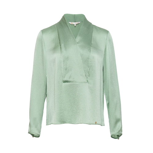 HUI/卉 女士长袖衬衫20秋季新品竹青色真丝套头衫V字叠领设计上衣