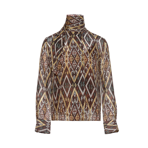 HUI/卉 女士长袖衬衫2020秋季新品真丝印花上衣领部飘带设计