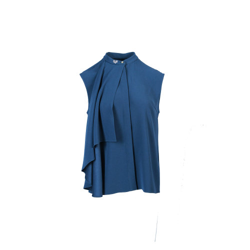 HUI/卉 女士短袖衬衫20春夏新款深蓝色无袖圆领套头衫