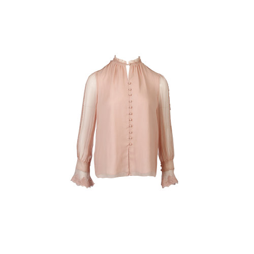 HUI/卉 女士长袖衬衫20春夏新品浅粉色蕾丝袖口真丝衬衫