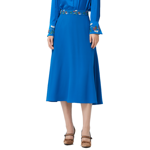 HUI/卉21年秋冬新品 靛蓝红妆香兰腰间非遗刺绣进口SPH纱线抗皱易打理A摆插袋女士半身裙裙子HR41A01463