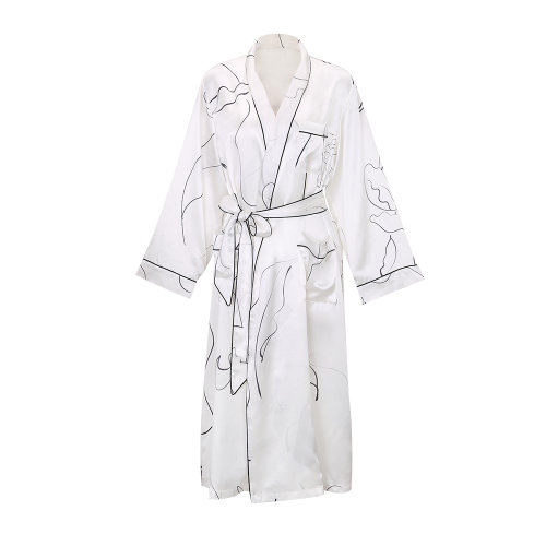 bifubyxingchen/彼伏女士线条真丝印花家居长款上衣女睡衣/家居服