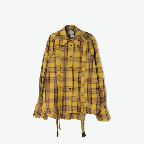 CHIZHANG/驰张 黄色格纹飘带女士长袖衬衫
