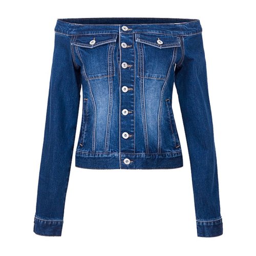 【Designer Womenwear】Chris by Christopher Bu/卜柯文18秋冬女士夹克一字肩牛仔上衣