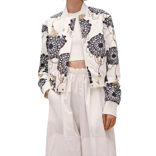 HERMES/爱马仕 22年秋冬新款 女士白色纯棉防水府绸图案印花双面飞行员夹克H2E0156DJ9034