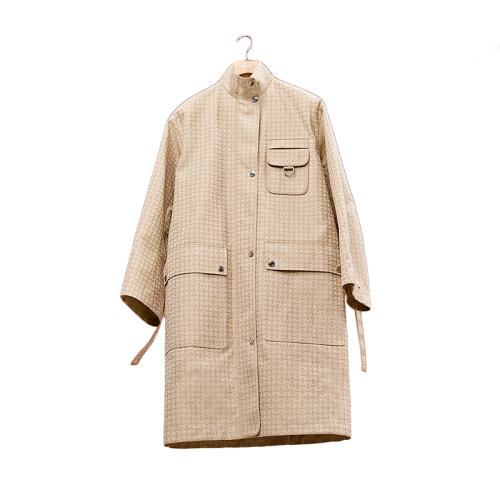 HERMES/爱马仕 22年秋冬新款 女士稻草米色纯棉马赛克图案风衣外套H2H0119DPM934