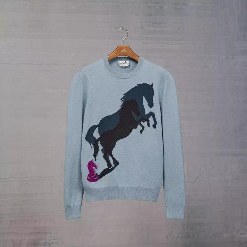 HERMES/爱马仕 22年早春新款 男士海洋色标志性纯羊绒圆领毛衣H257000HA01LA