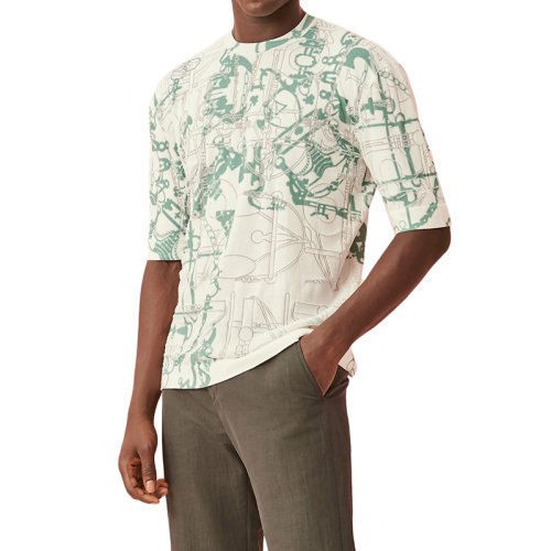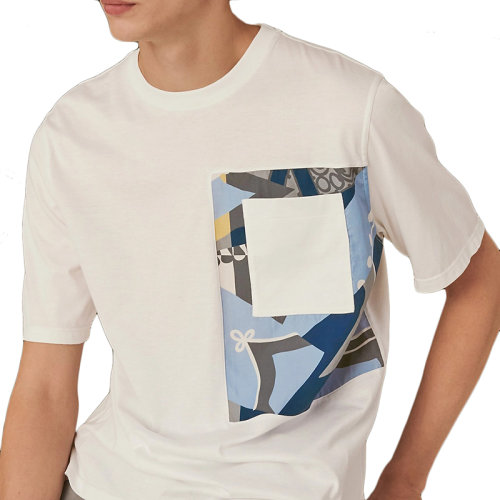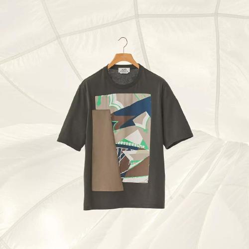 HERMES/爱马仕 22年早春新款 男士拼色棉和涤纶混纺印花T恤H257440HA64LA