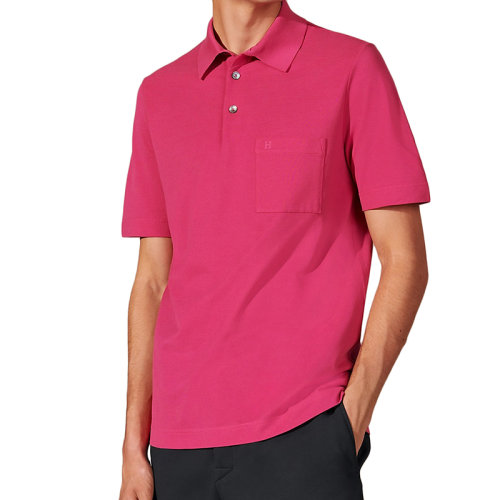 HERMES/爱马仕 22年春夏新款 男士亮粉色纯棉H刺绣短袖polo衫H072325HA53LA