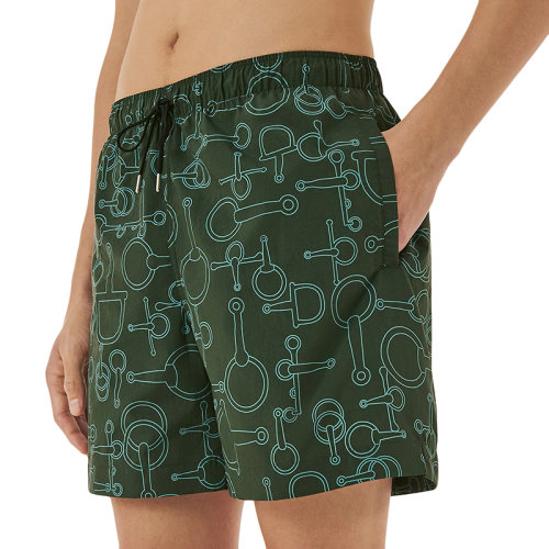 HERMES/爱马仕 22年秋冬新款 男士卡其绿色尼龙面料Mors and Mors图案平角游泳短裤H258100H511SM