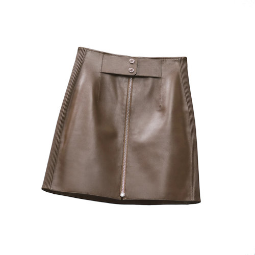 HERMES/爱马仕 22年秋冬新款 女士烟草棕色闪亮小羊皮抽褶细节迷你半身裙H2H1302D4BL34
