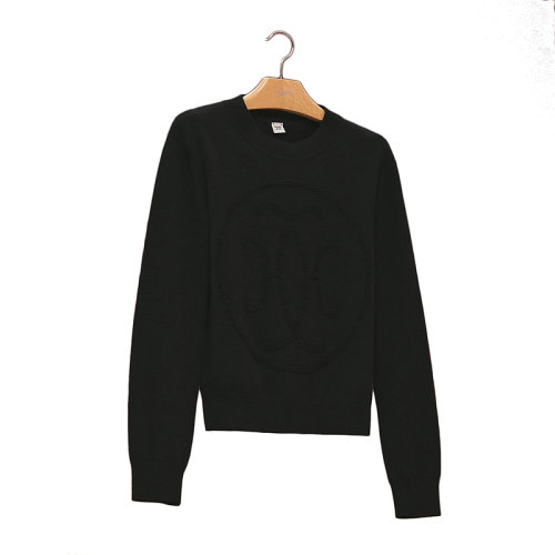 HERMES/爱马仕 22年秋冬新款 女士黑色纯羊绒H Lift图案长袖针织衫毛衣H2H2631D10236