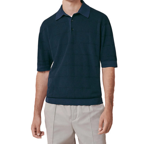 HERMES/爱马仕 22年早春新款 男士墨水色纯棉“H”型短袖Polo衫H257380HA6CLA