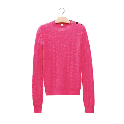 HERMES/爱马仕 22年秋冬新款 女士粉色羊毛混纺Promenade du Matin主题编织肩处饰牛角纽扣长袖套头衫毛衣H2H2644D65738