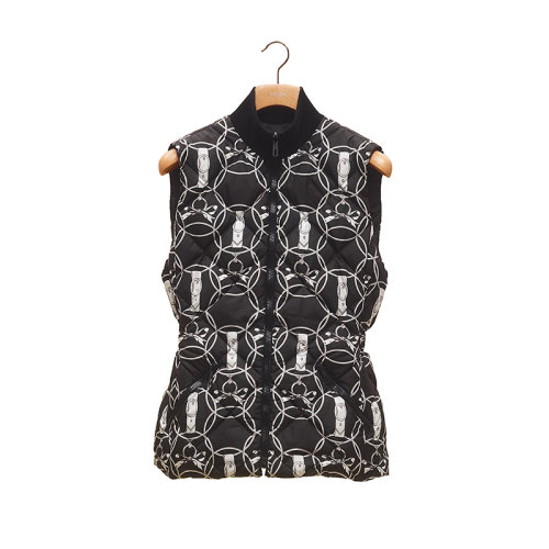 HERMES/爱马仕 22年秋冬新款 女士黑色织物“Promenade du Matin”图案印花拉链开合双面穿无袖羽绒背心H2H0258D40234