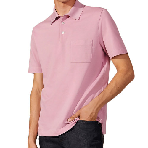 HERMES/爱马仕 22年春夏新款 男士浅粉色纯棉H刺绣短袖polo衫H072325HA51XS
