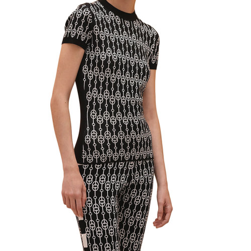 HERMES/爱马仕 22年早春新款 女士黑色真丝混纺“Cliquetis”图案短袖毛衣H2E2601D40234