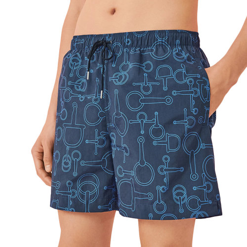 HERMES/爱马仕 22年秋冬新款 男士墨水蓝色尼龙面料Mors and Mors图案平角游泳短裤H258100H56CSM
