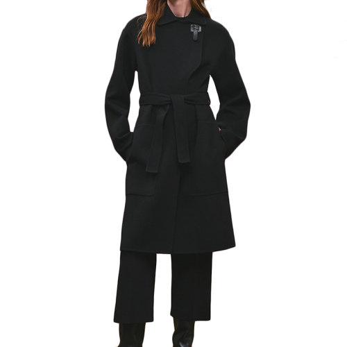 HERMES/爱马仕 22年秋冬新款 女士黑色纯羊绒浴袍风双面大衣H2H0128DA0242