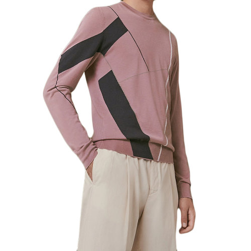 HERMES/爱马仕 22年早春新款 男士灰玫瑰色羊绒羊毛混纺圆领毛衣H257052HA0KLA