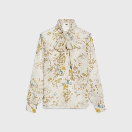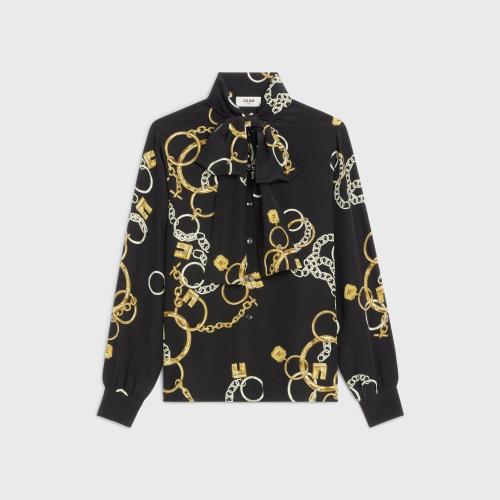 CELINE赛琳思琳 22年秋冬 女士 长袖衬衫 亮泽哑光桑蚕丝大花结衬衫 2C798399S.38NO