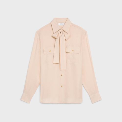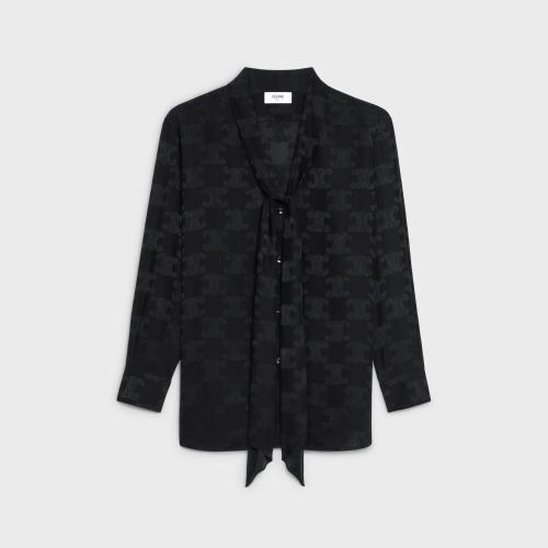 CELINE赛琳思琳 22年秋冬 女士 长袖衬衫 亮泽哑光桑蚕丝系带衬衫 2B713779R.38NO