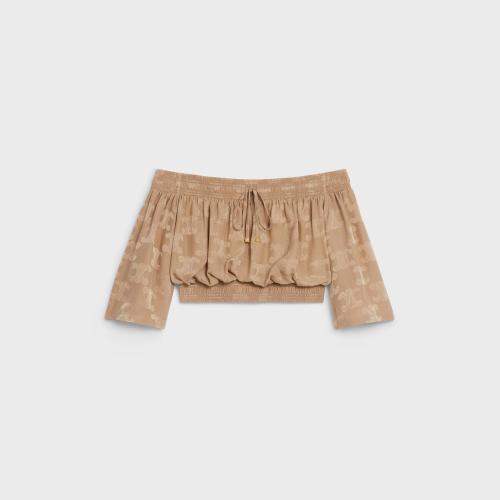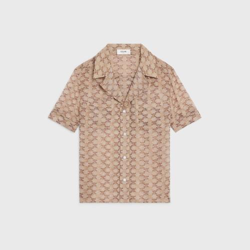 CELINE赛琳思琳 22年秋冬 女士 短袖衬衫 TRIOMPHE亮泽哑光桑蚕丝短款衬衫 2B711399S.31DE