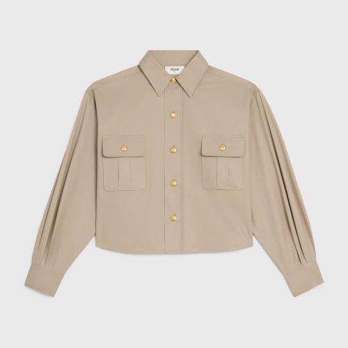 CELINE赛琳思琳 22年秋冬 女士 长袖衬衫 轻质华达呢短款衬衫 2C806204I.02BG