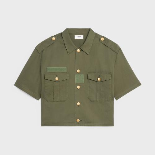CELINE赛琳思琳 22年秋冬 女士 短袖衬衫 轻质斜纹_旅风衬衫 2C580106K.02KK