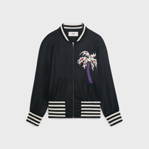 CELINE赛琳思琳 22年秋冬 男士 夹克 90年代风格缎面棕榈树学院风夹克 2V57H851C.38NO