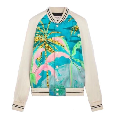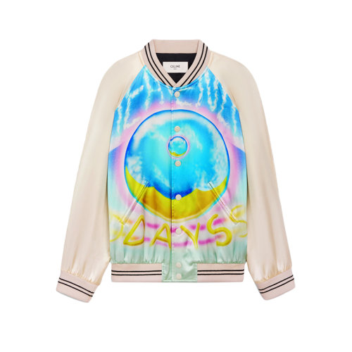 CELINE/赛琳 22年春夏新款 MARCELO LAVIN联名系列 男士拼色粘胶纤维面料HEAVENLY DAYS印花学院风夹克2V28H353Q.14MC