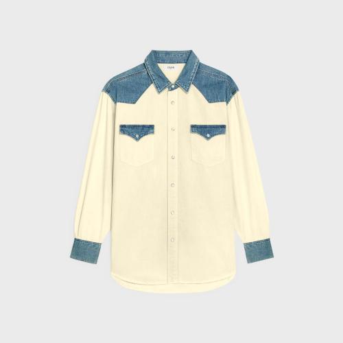 CELINE赛琳思琳 22年秋冬 男士 夹克 UNION OCEAN WASH水洗色西部风格牛仔衬衫 2T227362M.07UO