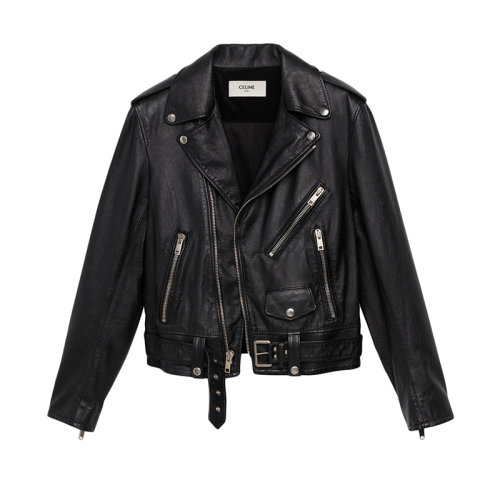 CELINE/赛琳 22年秋冬新款 男士黑色牛皮革经典机车夹克皮衣2E158599E.38NO