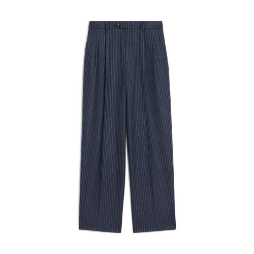 CELINE/赛琳 22年早春新款 女士海军蓝/粉笔色纯羊毛条纹法兰绒滑板裤2P519920C.07CU