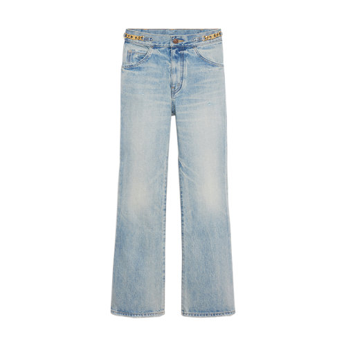 CELINE/赛琳 22年早春新款 DYLAN RIDER系列 女士蓝色纯棉淡橙水洗效果喇叭牛仔裤2N677084O.08KW