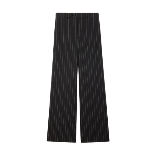 CELINE/赛琳 22年春夏新款 男士黑色/米白色纯羊毛条纹喇叭裤2P612108M.38OW