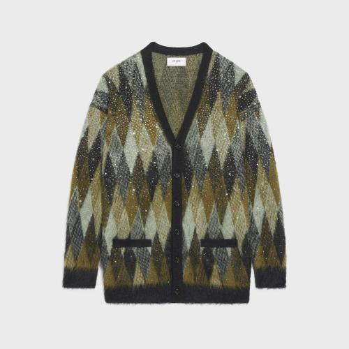 CELINE赛琳思琳 22年秋冬 男士 针织衫 拉绒马海毛长款刺绣开衫 2AA48606S.30GR