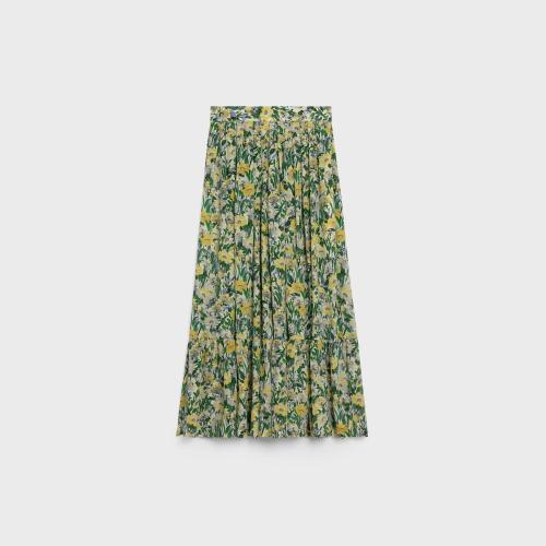 CELINE赛琳思琳 22年秋冬 女士 半身裙 “雏菊”绉绸中长百褶裙 2J439187R.01KS