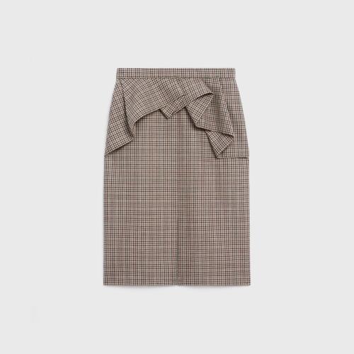 CELINE赛琳思琳 22年秋冬 女士 半身裙 90年代风格格纹法兰绒中长半身裙 2J400188O.27MB