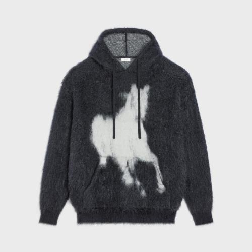 CELINE赛琳思琳 22年秋冬 男士 针织衫 HORSE桑蚕丝马海毛连帽套头衫 2AC15612S.38OW