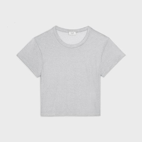 CELINE赛琳思琳 22年秋冬 女士 短袖T恤 金属质感平纹针织短款T恤 2X51B966Q.06AG