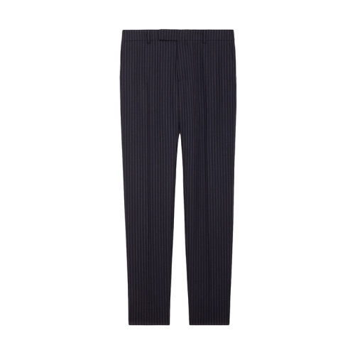 CELINE/赛琳 22年春夏新款 男士海军蓝色/青铜色纯羊毛条纹西裤2P085158M.07CN