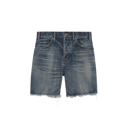 CELINE/赛琳 22年春夏新款 男士深联合水洗蓝色纯棉牛仔布百慕大滑板裤短裤2N390365M.07DU
