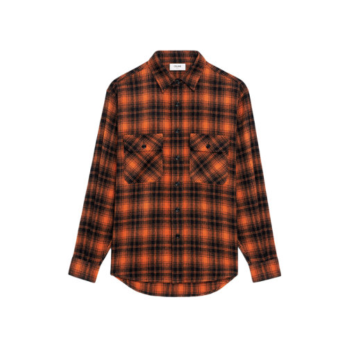 CELINE/赛琳 22年春夏新款 男士橙色/黑色羊毛混纺格纹宽松衬衫2C574073Q.20OA