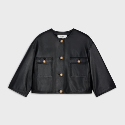 CELINE赛琳思琳 22年秋冬 女士 夹克 七分袖羊皮革短款夹克 2F330086H.38NO