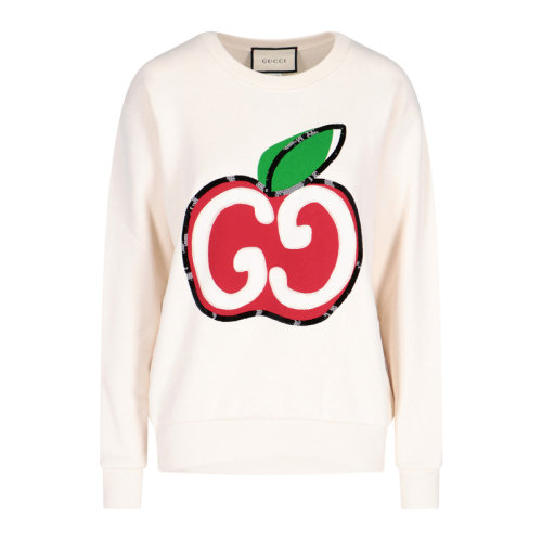 GUCCI/古驰 古琦女装 经典苹果双G 女士白色棉质圆领长袖卫衣 469250 XJCCK 9230