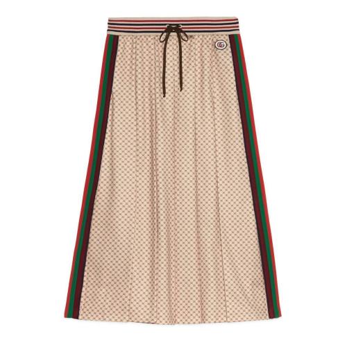 GUCCI古驰 22年秋冬 女士 互扣式双G印花褶裥半身裙 661786 XJDFP 9115