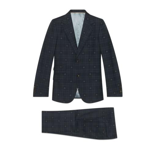 GUCCI古驰 22年秋冬 男士 修身蜜蜂格纹羊毛西装 606239 Z551J 4590