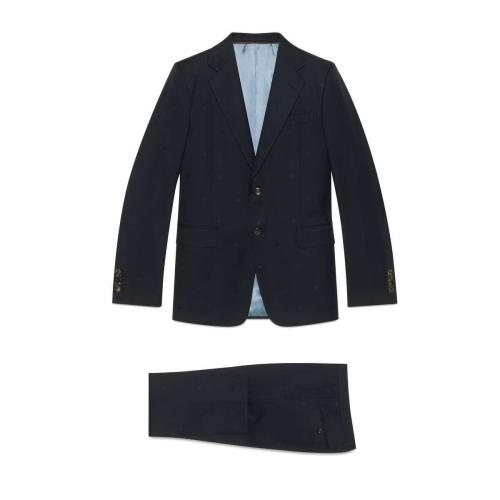 GUCCI古驰 22年秋冬 男士 直筒剪裁蜜蜂图案羊毛华达呢西装 604081 Z589E 4440