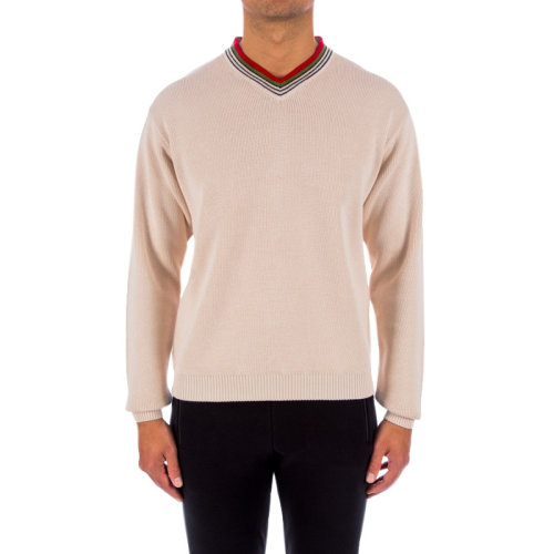GUCCI/古驰 男士米色羊毛红绿条纹领口长袖V领套头毛衣针织衫 626269-XKBFU-9750